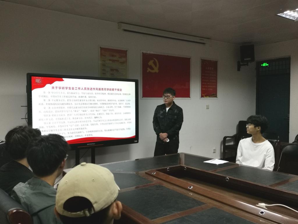 全体参会人员就座完毕,会议拉开序幕。秘书处部长孙一帆同学在会议上强调员工干部要紧跟时代要求,引领员工成长;要践行服务宗旨,务求工作实效;要坚持从严治会,纵深推进改革。同时他也讲述了作为一名优秀员工干部应该具备的基本素质,着重提出员工干部应该从自身做起,发挥好表率作用。全体员工干部听完后感触良多,也更加明确了自己以后的工作目标和准则。