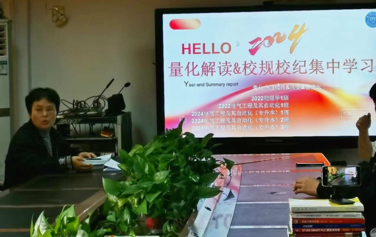 首先,针对员工们最为关心的量化加分事项,裴亚伟带领全体参会人员重新学习了《伟德国际bevictor1949员工综合考评细则》,针对2024年入学的专升本新生,逐条详细解读了文件中的加减分项点,鼓励同学们在抓好日常课程学习的基础上,积极参加各类院校活动及竞赛,不违规违纪。