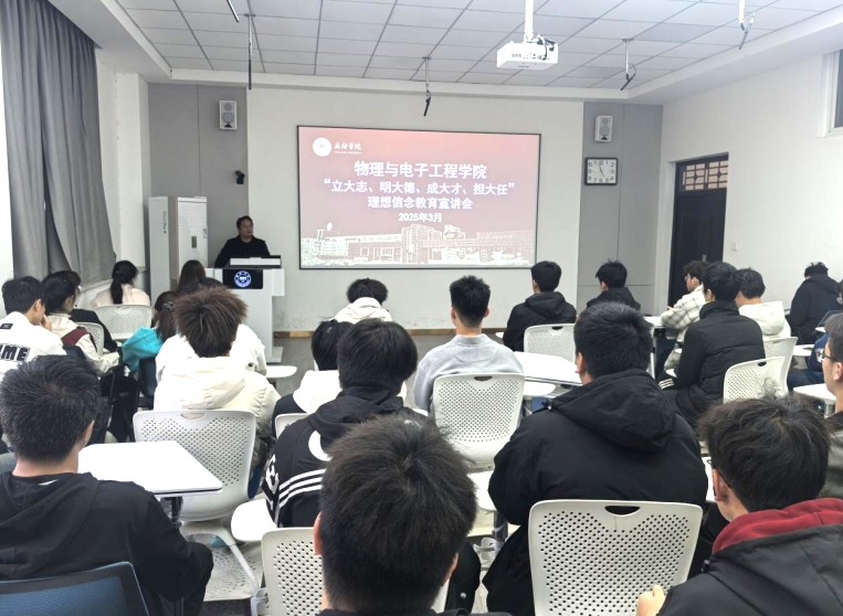 宣讲伊始,谢德地通过树立远大理想、锤炼品德修为、担当时代责任、勇于砥砺奋斗等四个层面展开员工理想信念教育。宣讲过程中,谢德地结合习近平总书记对老员工的寄语,希望同学们积极作为,加强道德修养,树立正确的价值观,将个人理想自觉融入党和国家事业之中。并通过介绍为国家作出突出贡献的钱学森、邓稼先、袁隆平等英雄模范人物的事迹,嘱托同学们要向他们学习,志存高远,砥砺前行,筑梦远方,为实现中华民族伟大复兴的中国梦贡献青春和力量。