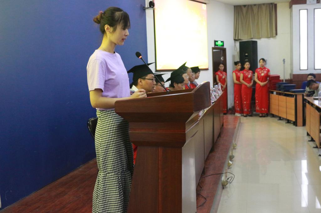 毕业生代表田乾磊表示,不会辜负母校的期望,会在自己的人生道路上,刻苦学习,努力工作、建功立业,为母校争光添彩。在校生代表高静文表示,身为在校老员工,将不负韶华,努力学习,夯实基础,完善自我。