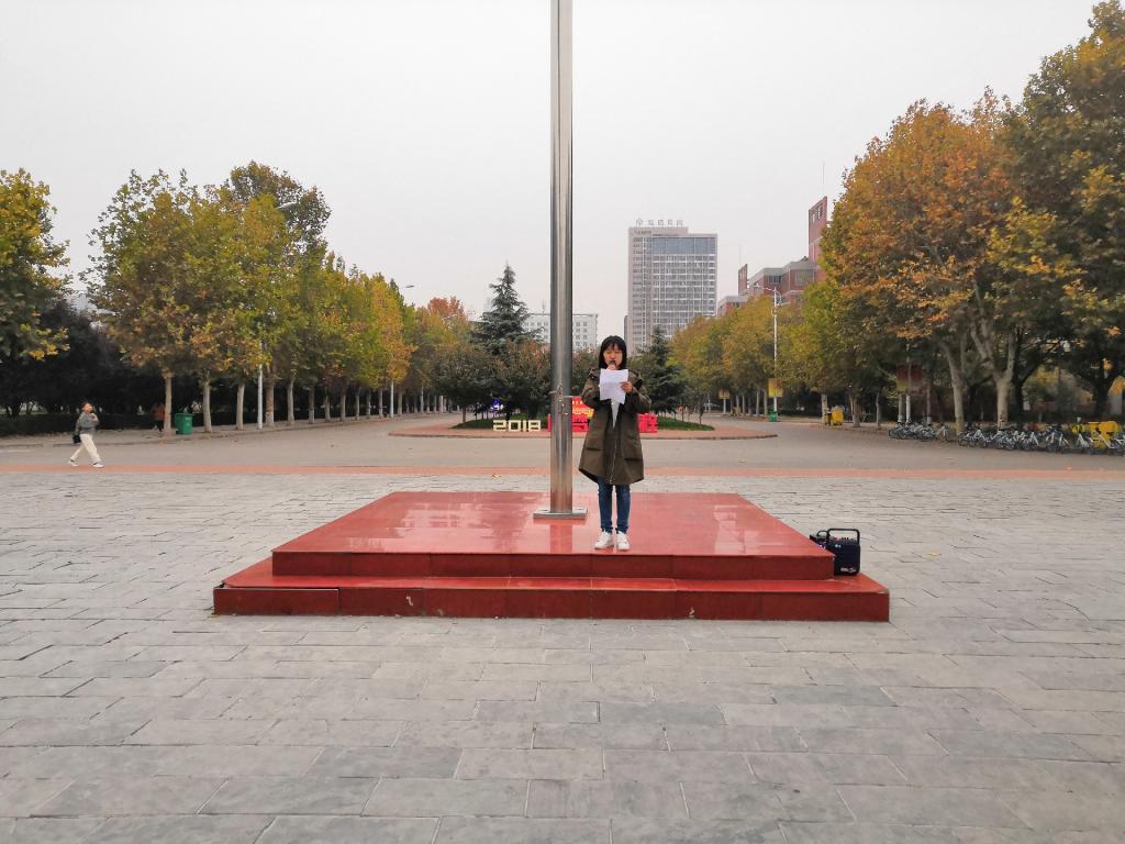 在主持人原喜亮同学简短的介绍后,升旗仪式在庄严的氛围之中正式开始。国旗护卫队迎着朝阳,迈着铿锵的步伐将国旗护送至升旗台,伴随着激昂雄壮的国歌声,鲜艳的五星红旗冉冉升起。接着,由员工代表王诗源同学和国旗护卫队的李蓓蓓同学依次发表演讲,她们希望同学们认真学习科学文化知识,团结友爱,自强不息,为实现强国梦贡献出自己的一份力量。