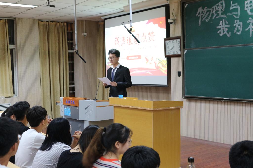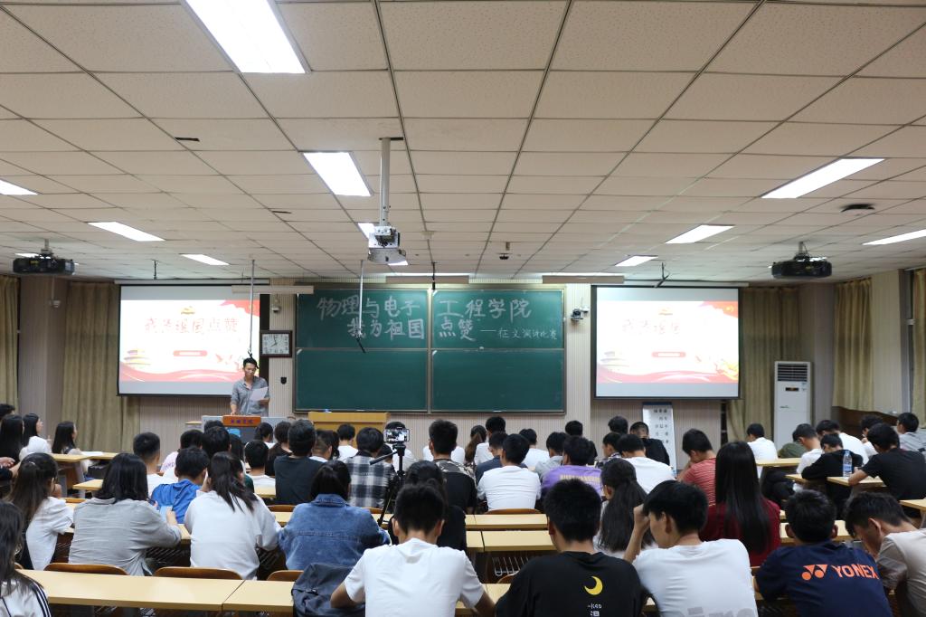 首先,由刘天赐同学致开场词并宣读完规则。随后,比赛正式拉开帷幕。参赛选手们在舞台上用最真挚的语言表达了对新中国的赞叹,用一句句振奋人心的话语和慷慨激昂的热情使新中国70周年所创造的成就历历在目。台下的同学们更是听的热血沸腾,心中抑制不住的激动。演讲结束后原喜亮同学做了精彩的点评。最后经评委投票评分决定赵炎龙、陈少杰、郑召召等六名同学获奖。本次活动圆满结束。