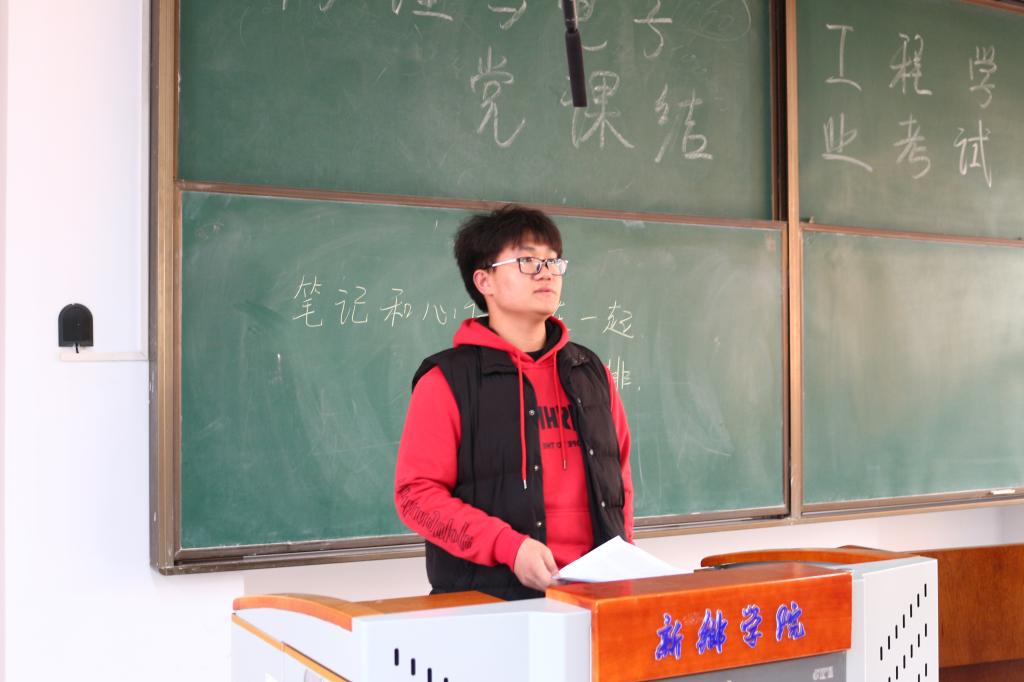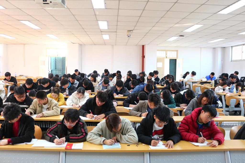 开考前,由监考人员宣读并强调考场纪律。在监考人员为各位考生分发试卷后,考试正式开始。在考试过程中,各位考生沉着冷静,奋笔疾书,只有答题的“沙沙”声。随着时间一点一滴的过去,本场考试也接近了尾声。考生们把自己的试卷、党课笔记以及党课心得交于监考人员手中,在监考人员收齐整理并做好记录后,本场考试圆满结束。