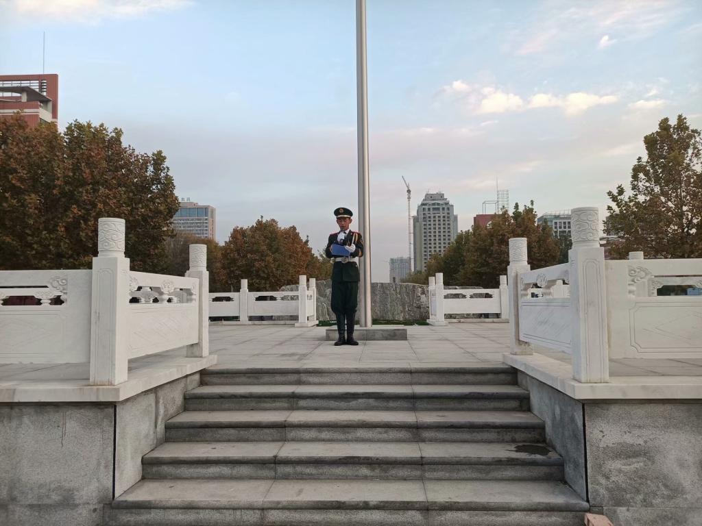 晨曦微露,国旗广场上早已汇聚了众多的身影,整齐的列队在国旗台下。迎着清晨的第一缕阳光,国旗护卫队成员穿着军装,迈着整齐的步伐进入升旗场地,自此,升国旗仪式开始了。慷锵有力的《义勇军进行曲》在拂晓的衬托下回荡在国旗广场上,回荡在每位员工的耳边。伴随着歌声,那面鲜艳的五星红旗缓缓升起,场下所有的员工满怀着对祖国的热爱和崇高的敬意,向着国旗行注目礼。曲毕,红旗也恰好临近顶端,曙光照耀下,丝丝寒风中,五星红旗傲然的迎风飘扬着。之后的演讲中,演讲人杜川同学以“爱国情怀”为主题表达了对祖国的热爱之情,展现出新时代青年对实现中华民族伟大复兴的远大抱负。