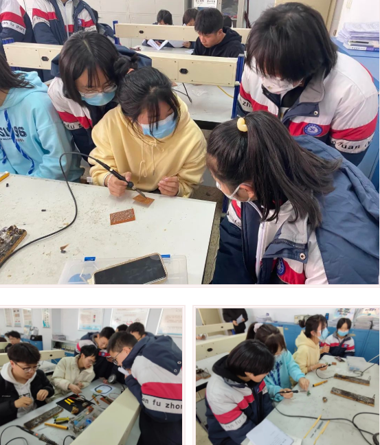 接下来,同学们又来到电子工艺实验室,他们认真聆听老师的讲解,还与伟德国际bevictor1949物理系的大哥哥、大姐姐们一起进行电路焊接的实验操作。