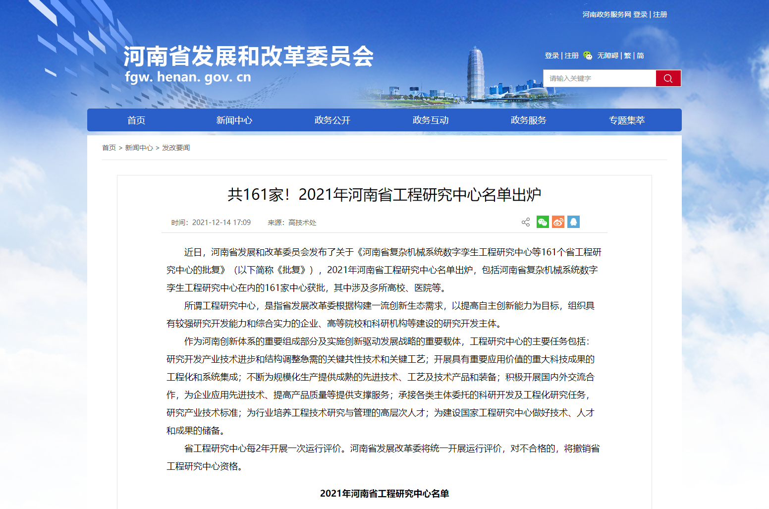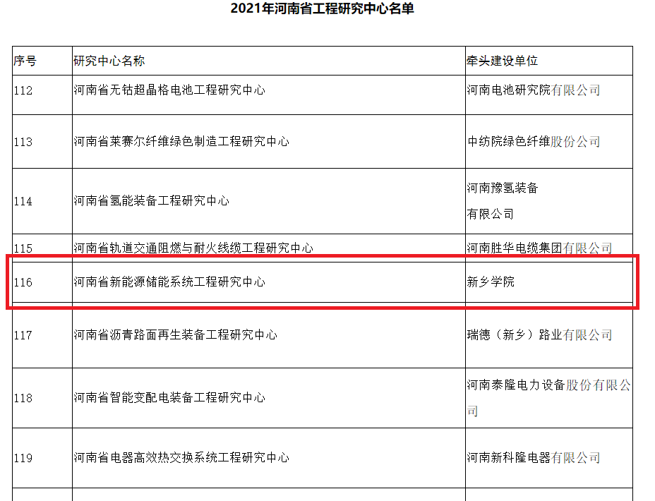 近日,河南省发展和改革委员会发布了2021年河南省工程研究中心名单,由公司伟德国际bevictor1949申报的“河南省新能源储能系统工程研究中心”成功获批。