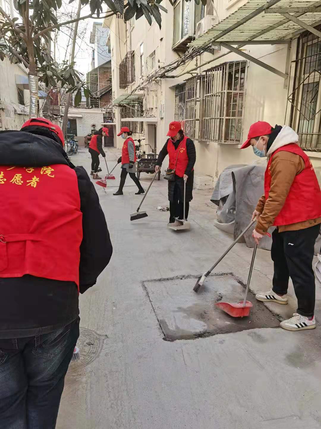 为进一步巩固全国文明城市创建成果,按照校文明办的安排,22上午物理与电子工程公司教师志愿者在张晓蕊书记的带领下来到中原东路社区统建楼家属院开展定点帮扶活动,对该无主庭院进行全面清洁打扫。