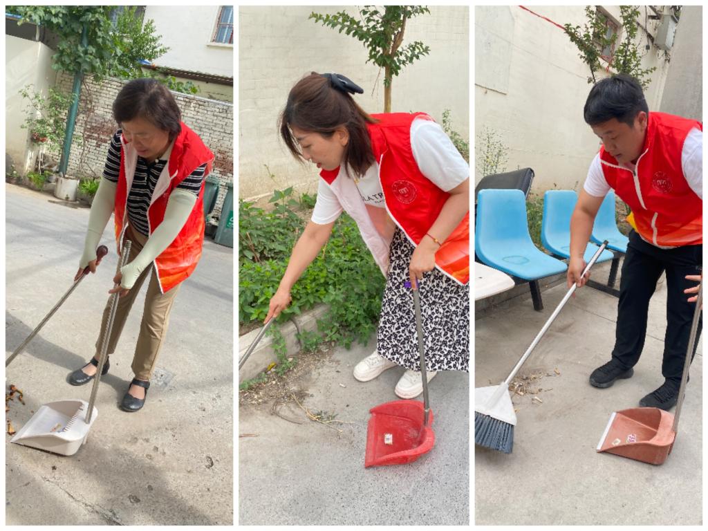 活动中,党员志愿者们分工合作、配合默契,身穿红马甲,不惧酷暑、不嫌脏、不怕累,手拿扫帚、簸箕等工具,充分发扬教师党员的先锋模范作用,对庭院垃圾碎屑、枯叶落花等进行清理。通过劳动使得无主庭院整体环境面貌焕然一新,赢得居民的一致好评。