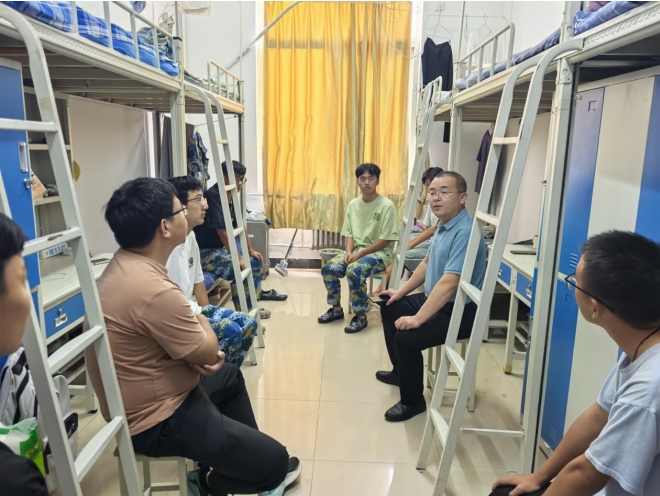 9月15日中午,伟德国际bevictor1949副经理常国锋带领新生辅导员到D11员工宿舍走访慰问2024级新生。常国锋与员工进行亲切交谈,对员工们提出的学习、生活等方面的具体问题进行答疑解惑,叮嘱员工们搞好宿舍卫生,注意用电安全,防范网络诈骗。此次宿舍走访有助于进一步了解员工们的思想状况,体现了公司领导对新生的热情关怀,拉近了师生间的距离,也为进一步做好员工工作奠定了坚实基础。